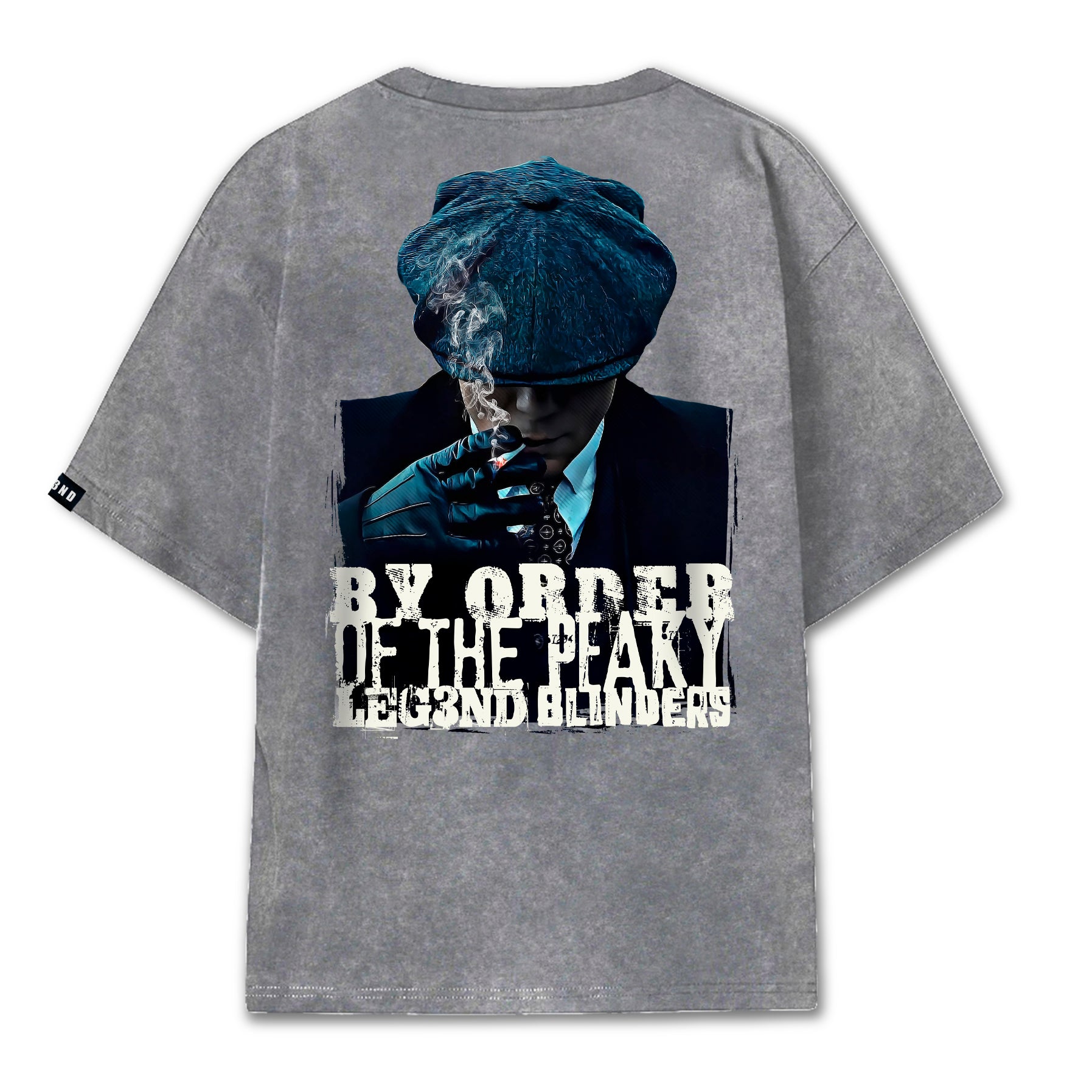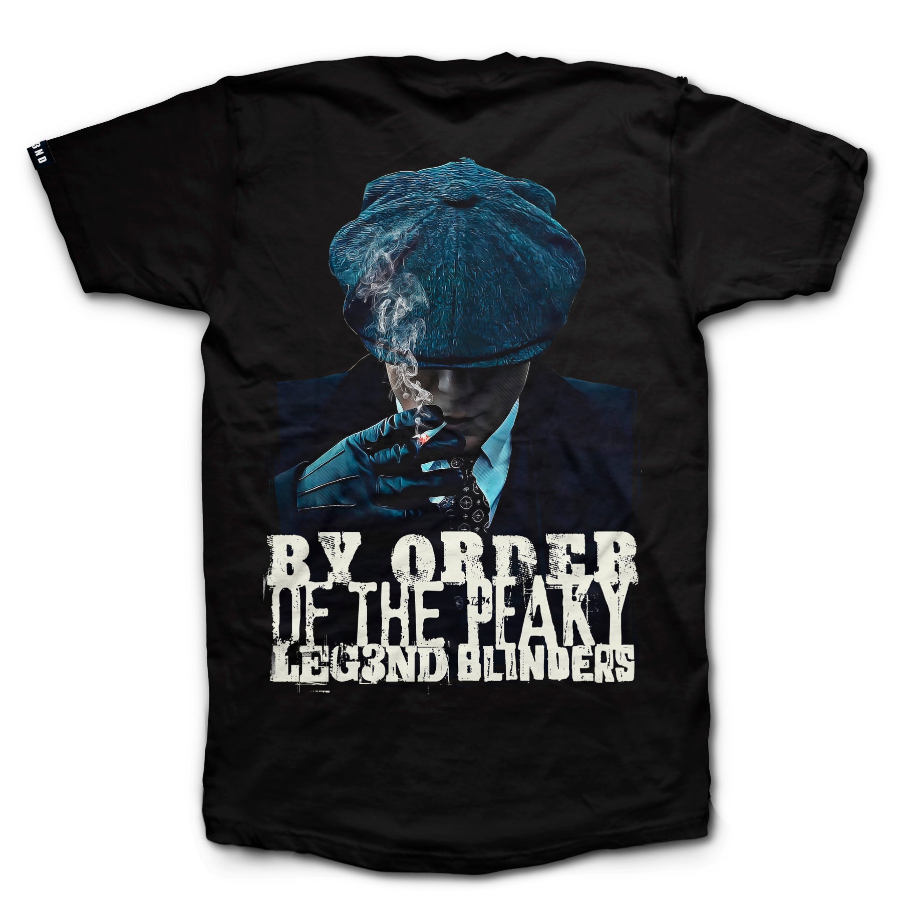 Ambas opciones comparten un frontal minimalista con la inconfundible silueta del líder en el pecho, y una espalda de alto impacto con un diseño a gran escala en alta definición, acompañado del lema "By Order of the Peaky LEG3ND Blinders".